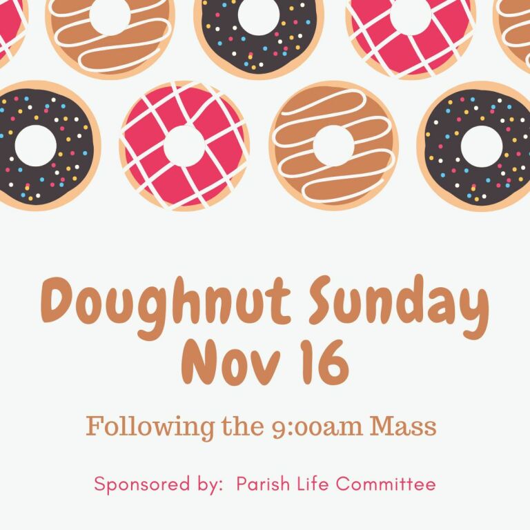 Join us after the 9:00 AM Mass in the parish hall for Doughnut Sunday! Enjoy coffee, doughnuts, and fellowship with our parish family. It’s a great way to catch up with friends and meet new faces — all are welcome!